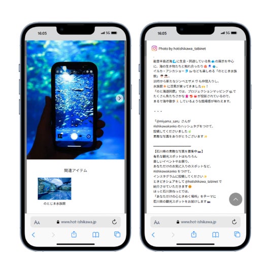 この度、公益社団法人石川県観光連盟(石川県 金沢市)が運営する、石川県の観光/旅行サイト「ほっと石川旅ねっと」(https://www.hot-ishikawa.jp/index.html )にて、Instagram上のUGCを活用する「visumo social」が導入されたことをお知らせいたします。