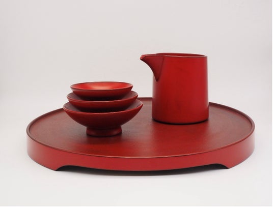 片口・筒型(大)38,500円 約450ml、盃(大)15,400円 約150ml、盃(中)13,200円 約120ml、盃(小)12,100円 約80ml、蒔地三ッ足丸盤 165,000円 直径:363×32mm ※値段はすべて税込