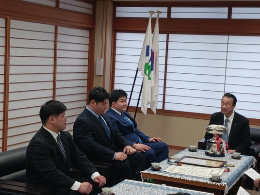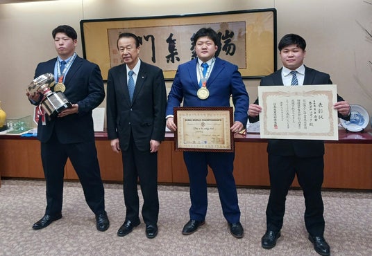 宮元市長には、世界相撲選手権大会出場前にも抱負をお伝えしにまいりました。今回は、世界相撲選手権大会のほか、今年一年の良い結果のご報告のためにあらためて伺うことができ、非常に嬉しく思っています。来年は、団体としては全日本実業団相撲選手権大会での連覇、個人としては世界相撲選手権大会での優勝など、出場する大会で今年以上の結果を残せるように頑張ります。