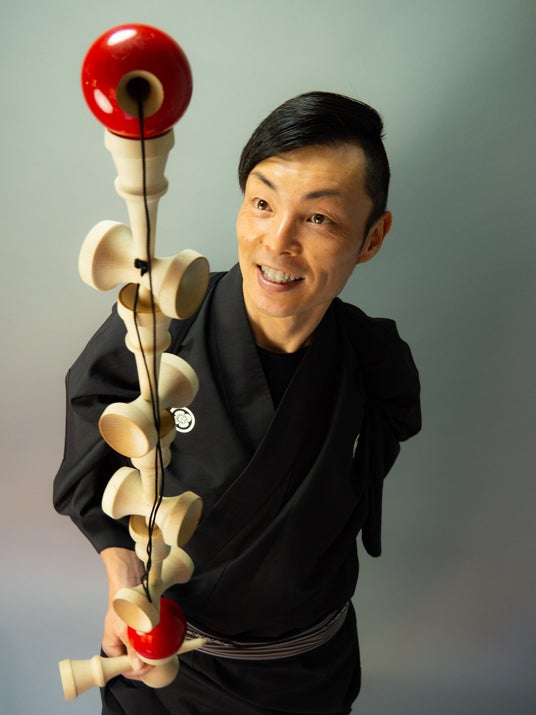 様々なけん玉を使用しアクロバティックな技や、ギネス記録を樹立した技を披露。