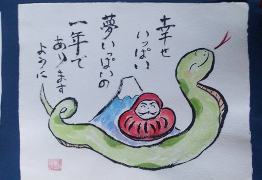 新しい年に移り変わるこの時に、良き年を迎えられますように、絵手紙でエールを送ります。来年の干支・巳を描いた葉書や大きな紙に描いた作品を展示いたします。