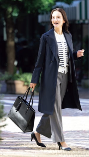 本企画で採用した高機能素材の特長は、伸縮性抜群のストレッチ性・撥水性・防汚性・透湿性です。優れたストレッチ性で体の動きにフィットし、快適な着心地。撥水加工を施しているため、突然の雨でも安心してご着用いただくことができ、さらに、防汚加工を施した素材で汚れがつきにくいうえ、ご自宅での洗濯が可能なため簡単なお手入れでいつでも清潔にご着用いただけます。湿気を逃がして水を通さない透湿性も兼ね備えており、汗や湿気が衣服内にこもらず快適な着心地です。また、気温が変わりやすい春先もライナーが取り外せて温度調整がしやすい仕様です。