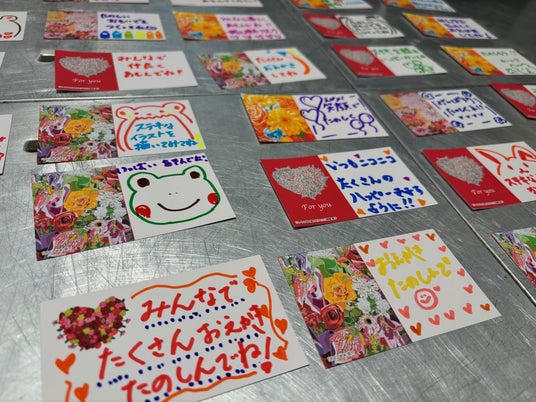 パソナグループは、同日12月19日(木)に、寄付品と目録をお渡しする贈呈式を、輪島市6校合同小学校(石川県輪島市河井町)と輪島市教育委員会(石川県輪島市二ツ屋町)にて実施。また、全国のパソナグループ社員が被災地の小学生に向けて書いた応援メッセージカードも合わせて送付いたしました。