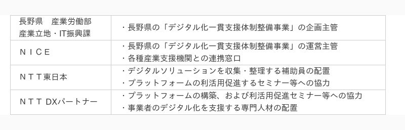 NICE、NTT東日本およびNTT DXパートナーは、長野県および各産業支援機関と連携させていただき、長野県内企業のデジタル化・DX推進をご支援していきます。