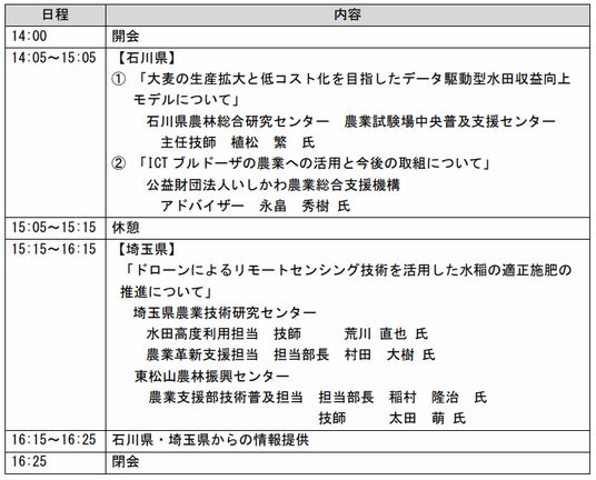 主穀編では、「いしかわスマートアグリプラットフォーム」を運営する石川県との連携企画として、両県(埼玉県・石川県)のスマート農業技術の実証や試験研究結果、普及に向けた取組について御紹介します。