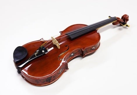 通常ヴァイオリン製作に使われるニスの代わりに漆を使用。側面に更紗花模様、テールピースに千鳥の意匠を用いています。美しい音色で、能登の復興に向け人々を元気づけてくれます。