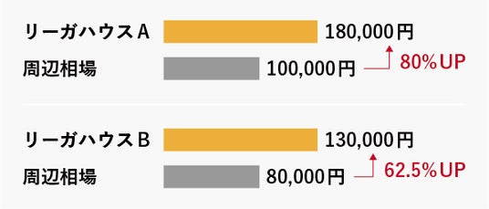 希少性が高い賃貸ガレージハウスは他との差別化が図れるため周辺の家賃相場の影響を受けにくく、家賃も高めに設定できます。