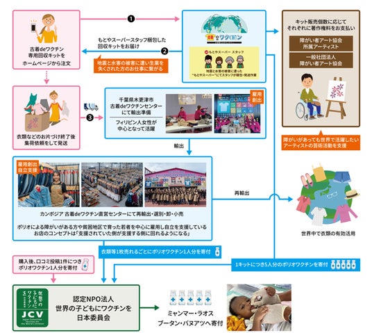 ご家庭でご不要になった衣類を簡単便利に手放すことができる有料の「自立支援型・寄付つきお片づけ商品」です。毎月約25,000人のお客様にご利用いただき、2010年の販売開始から累計58,711,350着分の衣類を有効活用7,915,657人分のポリオワクチン寄付をし開発途上国の子ども達の命を救いました。(2024/11/30現在)