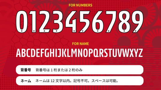 昨季同様、Jリーグ統一ネーム&ナンバーのフォントを模倣し視認性を維持しながらも、背番号の数字下部には、クラブエンブレムを入れたデザインを使用します。