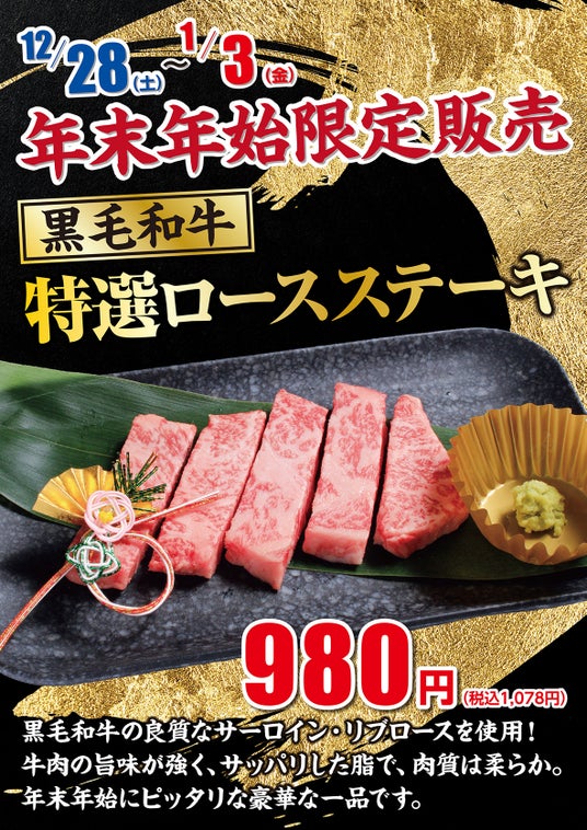 2024年12月28日(土)~2025年1月3日(金)の年末年始期間は『黒毛和牛特選ロースステーキ』を販売いたします!