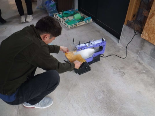 今回、トンカンテラスの協力で、回収したごみの一部を活用し、トイレサインを作りました。トンカンテラスは、海岸に流れつく大量のプラスチックごみの問題に取り組む団体で、海洋プラスチックをアップサイクルした商品を開発・販売しています。