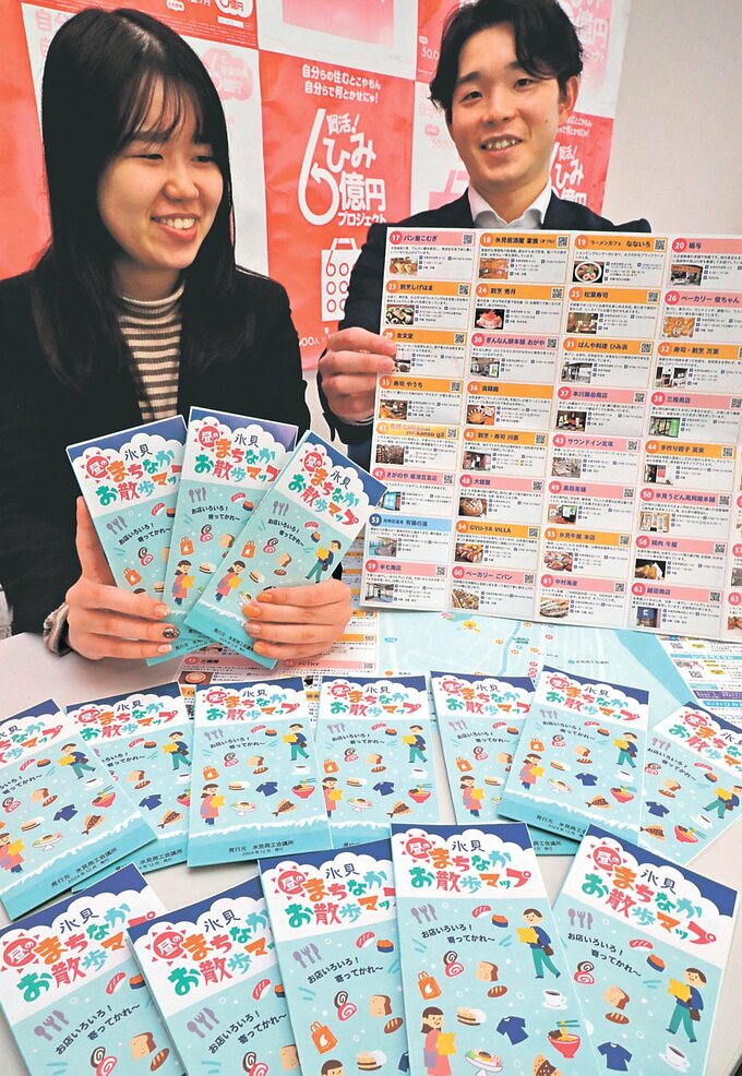 富山県の氷見商工会議所は、氷見市中心市街地の昼営業の飲食店や小売店を中心に紹介した「昼のまちなかお散歩マップ」を作った。能登半島地震の発生からもうすぐ1年を迎える中、誘客や売り上げ向上を後押しする。