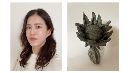 生命力のある向日葵や、地球の生命体には欠かせない太陽などの光をイメージするものも作品に多く取り入れています。珠洲焼の自然な素材と組み合わせ、優しく力強い何かを伝えられたら幸いです。