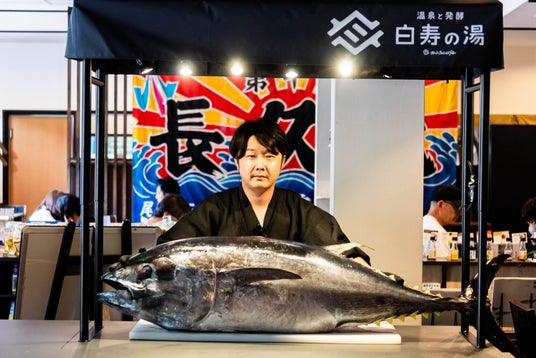 白寿の湯の料理長が旬の魚を日本全国の市場から取り寄せ、お客さまの目の前でさばき、振舞うイベント。毎月第三日曜日に開催します。白寿の湯は敷地内でサバの陸上養殖に挑戦しており、イベントを通じて、地方の珍しい魚種の紹介や、地域ならではの食べ方など、各地の食文化の発信を行っていきます。