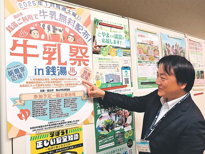市農業水産課係長の矢郷徳宏さん(48)は「この機会に牛乳を飲んで習慣化してほしい。風呂上がりの一杯を楽しんで」と話した。