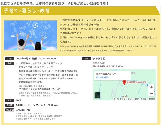 本事業を通して、上市町のどこにも負けない移住・子育て支援について多くの方に知っていただき、上市町に興味を持っていただくきっかけとなることを目指しています。