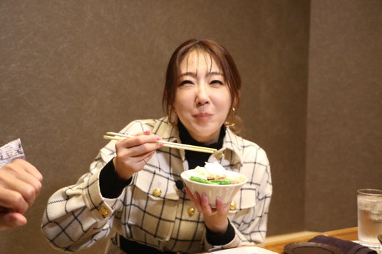 東尋坊商店街の【やまに水産】で三田村による甲羅酒講座に眞鍋も初挑戦!
