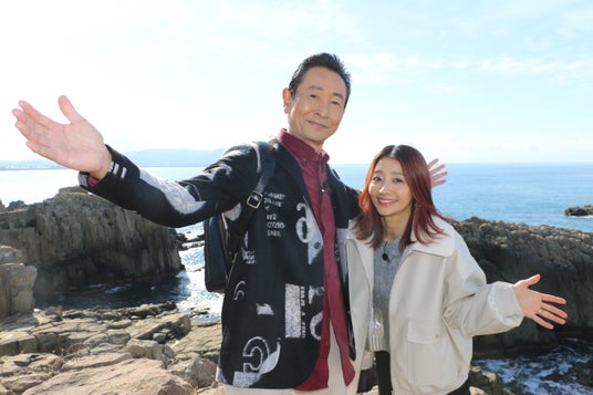 東尋坊へやってきた三田村。ここからは眞鍋かをりとご褒美たび。なんと10年ぶりの番組出演!