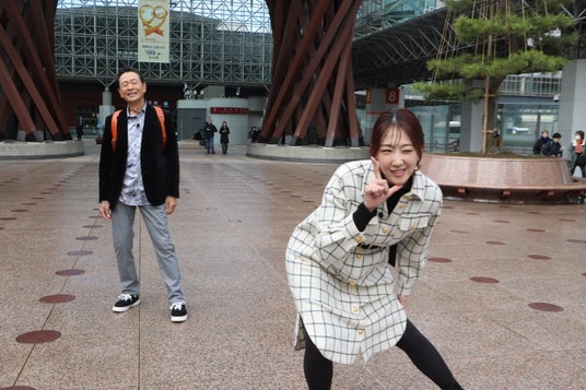 加賀温泉から金沢へやってきた三田村。ここからは元宝塚トップスターの紅ゆずると最後のご褒美たび。