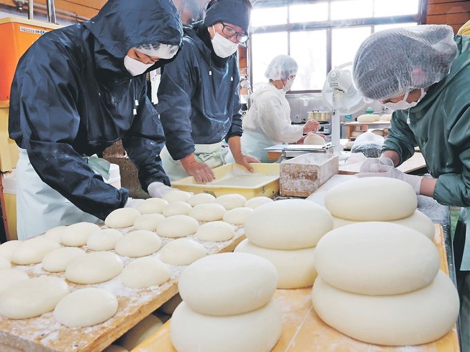 円満な1年願い鏡餅作り 県内で生産ピーク 2024年12月30日 05:00 社会・話題 作業台に並ぶ作りたての鏡餅=池乃端屋 正月用の鏡餅作りが、富山県内の餅店で最盛期を迎えている。富山市山室の池乃端屋では29日、従業員ら約10人がつきたての餅を手際良く丸め、形を整えた。 この日は未明から作業を開始。従業員の家族も手伝い、大小さまざまな鏡餅を約80個仕上げた。池内律子店長は「まだまだ地震の被害が残る地域もある。来年は、穏やかで笑顔のあふれる円満な一年になればいい」と願った。 この機能は会員限定です。 お気に入りの記事を保存し、マイページで読むことができます。 ログイン 会員登録はこちら