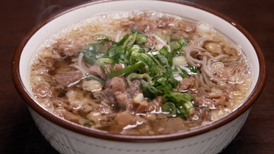 人気メニューは牛すじがたっぷり入ったすじそばで地元の若狭牛を使用し、時間をかけてじっくり煮込み、長年の勘を頼りに目分量で味を整えるそばつゆとの相性抜群!