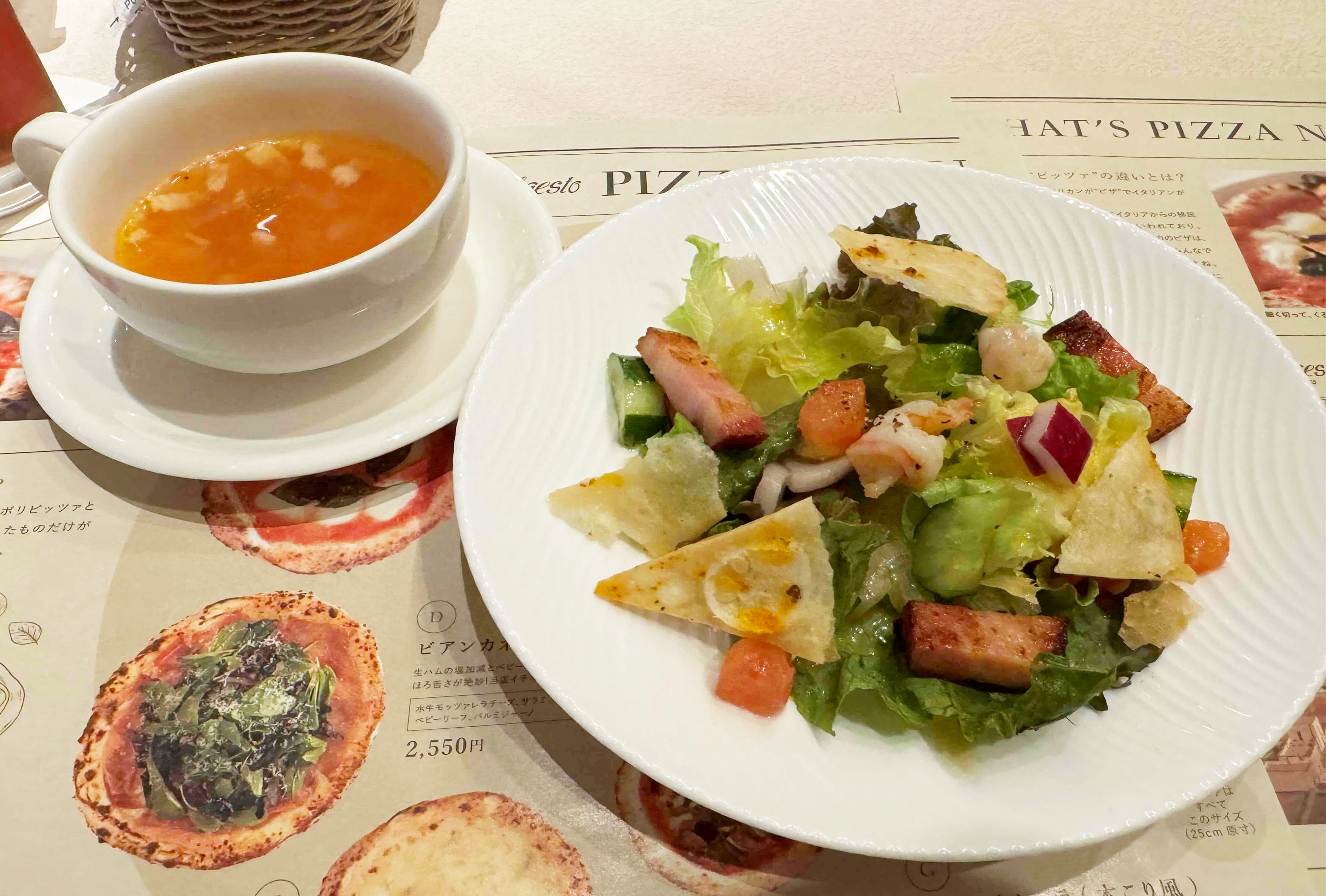 最初にサラダとスープがサーブされました。