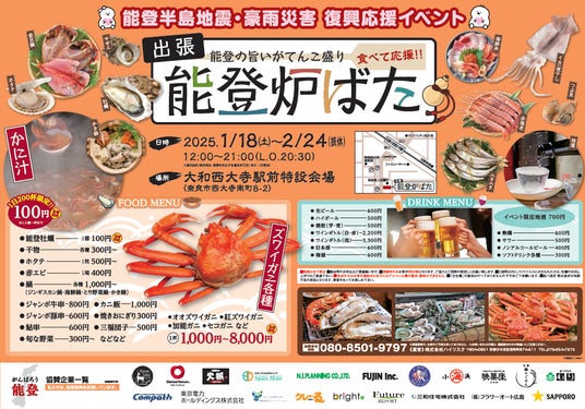 能登半島地震、豪雨災害で被害を受けた能登地方を応援する食のイベント「出張 能登炉ばた」を2025年1月18日(土)に奈良市西大寺にて開催いたします!