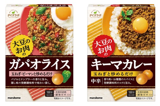マルコメ株式会社(本社:長野市、代表取締役社長:青木時男)は、近年、ますます注目が集まっている大豆のお肉を使用したダイズラボ 惣菜の素シリーズから「ダイズラボ 大豆のお肉 ガパオライスの素」「同、キーマカレーの素」を3月上旬より全国で販売します。