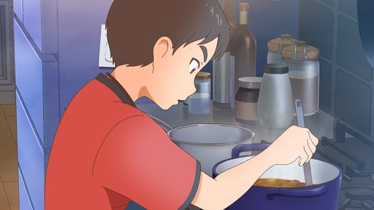 今作は当社とご縁のあった料理家、栗原心平さんを主人公に描きました。リアリティを追求するため、何度かインタビューや打ち合わせを重ね、栗原さんのほぼ完全な実話のストーリーが仕上がりました。カレーの作り方も資料動画を見るだけでなく、実際に制作スタッフ皆で栗原さんの事務所へお伺いして、材料、調理器具、所作の細かい部分まで確認しました。その際に振る舞われたカレーはとても美味しかったです。作中に出てくる猫も、実際に栗原さんが飼われている可愛らしい猫です。主人公(本人役)の声はご本人が担当されましたが、とてもお上手でセリフ収録もスムーズに進行しました。栗原さんのお人柄にスタッフも癒され、笑顔の絶えない現場となりました。子どもの成長にグッとくる親目線、リアルで温かな物語を感じて欲しい作品です。