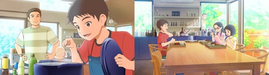 13作目となる今回の「料亭の味 料理ってすごいね篇」も過去12作品と同じく、アカデミー賞で短編アニメーション賞を受賞した実績もある映像制作会社のロボットに依頼しました。今作に登場するのは、料理家の栗原心平さんと小学生の息子の廉平くんです。栗原さん親子の実話をCMで再現しました。幼なじみの姉妹から「料理をごちそうしてほしい」と言われたことから、廉平くんは父、栗原心平さんにカレーの作り方を教えてほしいと頼みます。栗原さんの指導のもと、カレーとみそ汁を作ったところ姉妹は大喜び。その夜、栗原さんと一緒にお風呂に浸かりながら、「お父さん、料理ってすごいね」とおもむろに言う廉平くんに栗原さんは「今さらかよ」と呆れつつ、料理で人を笑顔にする喜びを知った息子の言葉に思わず笑みを浮かべます。料理の持つ力を知った廉平くんと料理家である自分の仕事の価値に息子が気づいてくれた喜びを感じた栗原さん親子の物語を描いています。