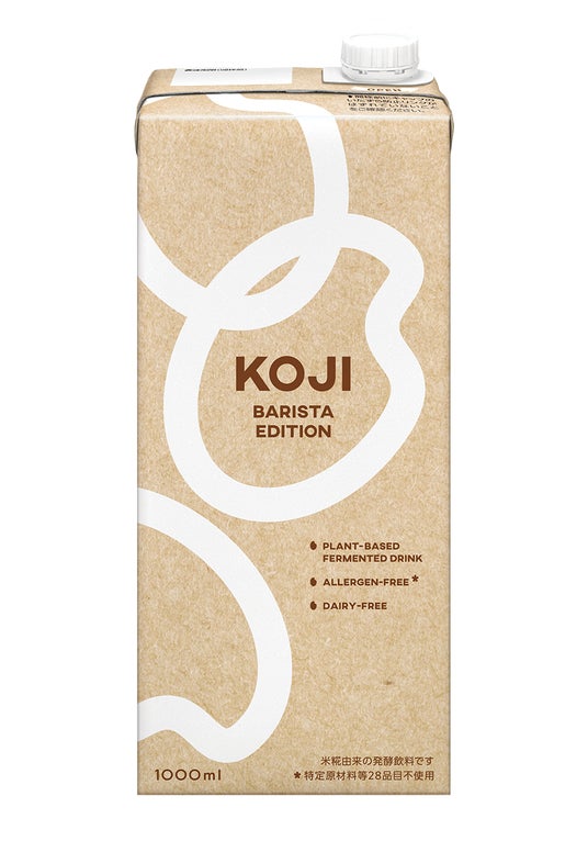 近年、コーヒーに植物性ミルクを合わせたラテが増加しています。一方、植物性ミルクの風味がコーヒーの味を阻害する、牛乳と比べて濃厚さに欠ける、フォーミング(空気を含ませながらミルクを泡立てる)の際にミルクが沈殿しやすく泡立ちが良くない、といった課題がありました。「KOJI BARISTA EDITION」は、マルコメ独自の発酵技術でこれらの課題を解決。味のバランスが牛乳に近く、他の植物性ミルクと比較してクセが少ないため、深煎りから浅煎りまでコーヒーの味を邪魔しないことが大きな特徴です。また、砂糖を加えなくても自然な甘みを感じることができます。ミルクが沈殿しにくく、フォーミングに優れているため、滑らかな舌触りでラテアートにも最適。国産の米と米糀でアレルゲンフリー(特定原材料等28品目)です。乳製品ではないため、乳糖不耐の方も安心して飲むことができます。