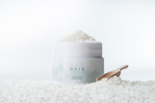 奥能登の海から伝統的な製法で製塩された能登の天然海塩*1を使用したバスソルトです。精油は「能登ヒバ」を中心にブレンドし、ヒノキより少し強めでウッディー×スパイシーな森の香りをまとう、心と体がとろけるような香りになっています。