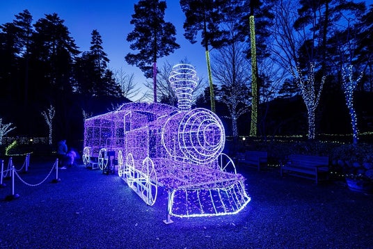 長野県内最大級のイルミネーション。「光輝く機関車の旅」が今年のテーマ。