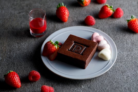 甘酸っぱいフランボワーズムース、イチゴムース、甘さ控えめのホワイトチョコムースが織りなす軽やかな味わい。クラシックショコラの深い甘みと、フランボワーズソースの爽やかな酸味が絶妙なバランスを生み出します。ソースと3種類のムースの組み合わせで、さまざまな味わいを楽しめる贅沢な一品です。
