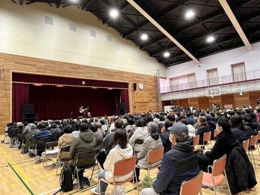ラポルトすずと輪島中学校の体育館にて、パブリックビューイングを実施
