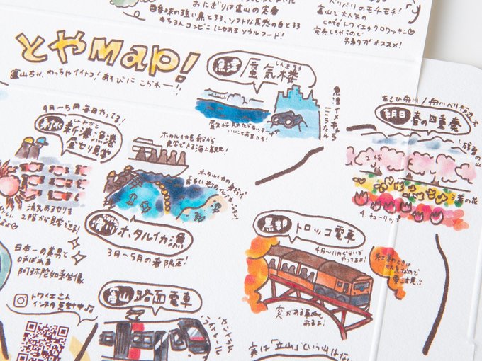 ライチョウをかたどった形がかわいらしいサブレ。さっくりとした歯応えが心地よく、きな粉の香ばしい香りが広がる。パンやケーキ、ランチなどを手掛ける「Caféトワイエ」(富山市)が販売している。「富山をもっと県外の人にアピールしたくて作りました」とオーナーシェフの谷脇健太郎さんと妻の由実さん。ライチョウのつがいが寄り添うパッケージは、開けると県内の観光マップが現れる。高岡大仏や黒部ダムなど県内の名所を、射水市のイラストレーター、いわぐちゆうこさんが描いたもので、ポップなイラストに心が弾む。「大切な人へのお土産におすすめです」と由実さんは笑顔で話す。