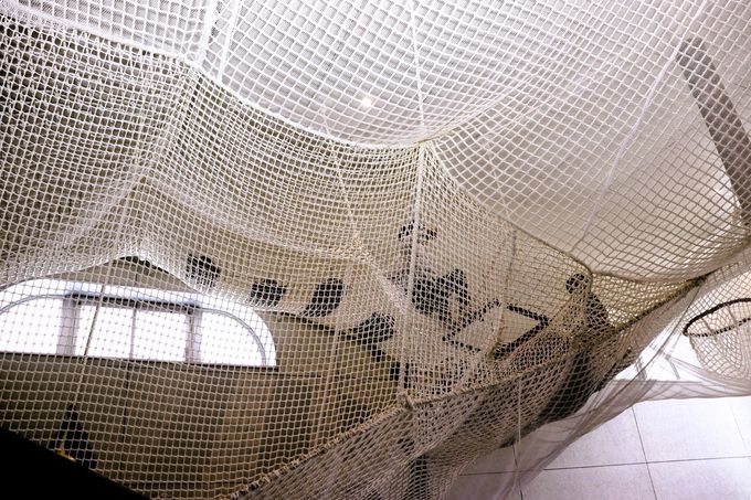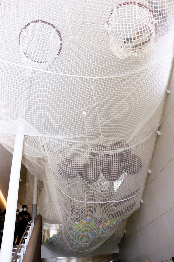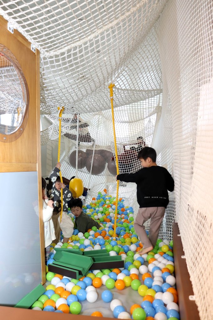 ネットは2層構造で、自由に行き来ができます。ボールが敷き詰められ、クライミングロープなどもあって飽きることなく体を動かせる工夫がいっぱいです。