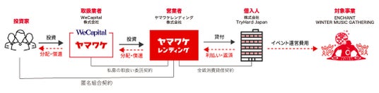 WeCapital株式会社(本社:東京都港区、代表取締役:松田悠介、橋口遼、以下「当社」)は、当社が運営する融資型クラウドファンディングプラットフォーム「ヤマワケ」(https://yamawake.jp/)を通じ、株式会社TryHard Japan(本社:大阪市中央区)が主催する音楽イベント「ENCHANT WINTER MUSIC GATHERING Presented by MUSIC CIRCUS」(以下「本イベント」)への支援を開始いたします。