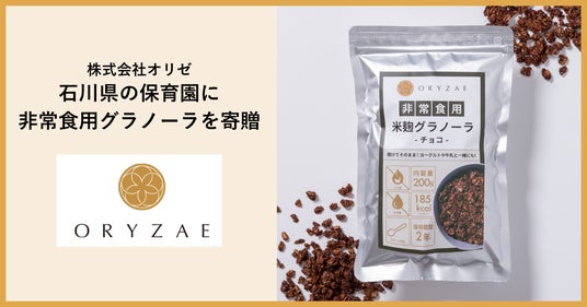 日本の伝統発酵技術を用いて社会課題解決を目指す株式会社オリゼ(本社:東京都渋谷区、代表取締役:小泉泰英)は、2025年1月23日(木)、石川県野々市市にあるエンジェル保育園にて非常食用米麹グラノーラを180袋寄贈することをお知らせいたします。また、本グラノーラは本日1月17日(金)~オリゼECサイトにて販売開始いたします。