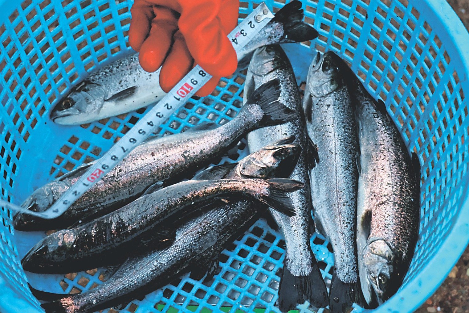 今年は2基のいけすのうち、しけの影響で1基が故障したため、3年目の9500匹より養殖数は減るものの、荻野洋一組合長(59)は「今年は一つのいけすで集中して養殖する分、成長具合の良い結果を残し、皆さんに喜んでもらえるギンザケを育てていきたい」と話した。
