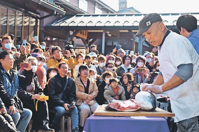 小矢部市の会社員、長谷川久美子さん(35)は「毎年楽しみにしており、今年の解体ショーのブリは大きく見えた。豊漁のブリを味わいたい」と話していた。