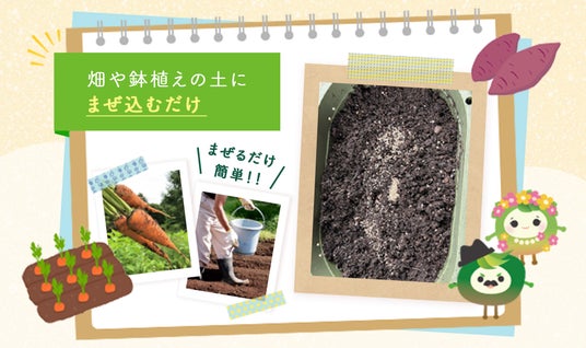 土にまぜるだけで使える、業界初!独自製法のゼオライトタイプ土壌改良剤。植物の根を健康に育て、光合成を促進します。
