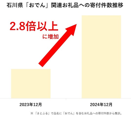 TOPIC2 石川県の「おでん」関連お礼品への12月の寄付件数は2.8倍以上に!被災地支援を目的とした”イミ消費”がみられる