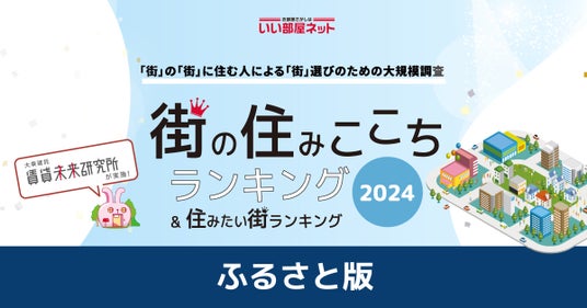 ・新聞・雑誌、テレビ・ラジオ等の報道関係者におかれましては、本リリースを掲載・報道または引用する場合には、「いい部屋ネット 街の住みここちランキング2024<ふるさと版>」と出所の表記をお願いします。