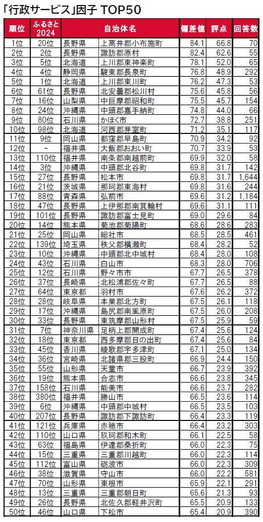 ●「行政サービス」因子の2位~4位は、「住みここち<ふるさと版>」でトップ5に入っている自治体です。