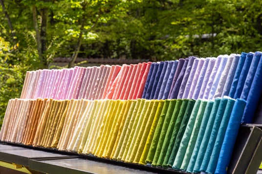 特徴1 昨年使用した布を再染色した、風に揺れる100色のインスタレーション