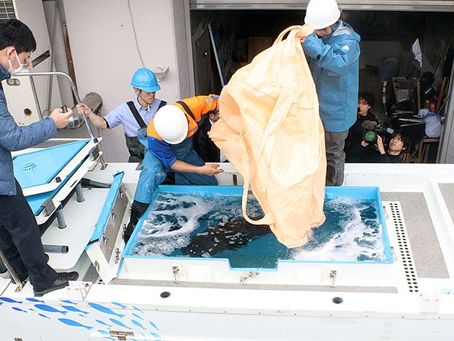 飼育員らに見送られ、トラックは上越市のうみがたりに向けて出発した。約1時間かけて無事到着したという。木村知晴飼育員は「長い間世話をしていたので思い入れがありさみしい。新しい水族館でもアイドルになってほしい」と話した。