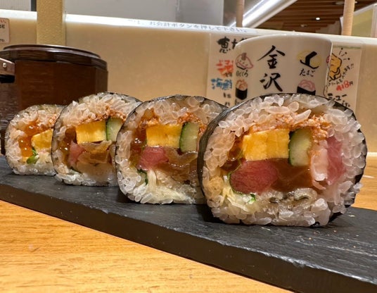 内容:能登寒ぶり・紅ズワイガニ・本まぐろ・いくら・えび・穴子・数の子・玉子・きゅうり・大葉・かんぴょう・甘酢しょうが
