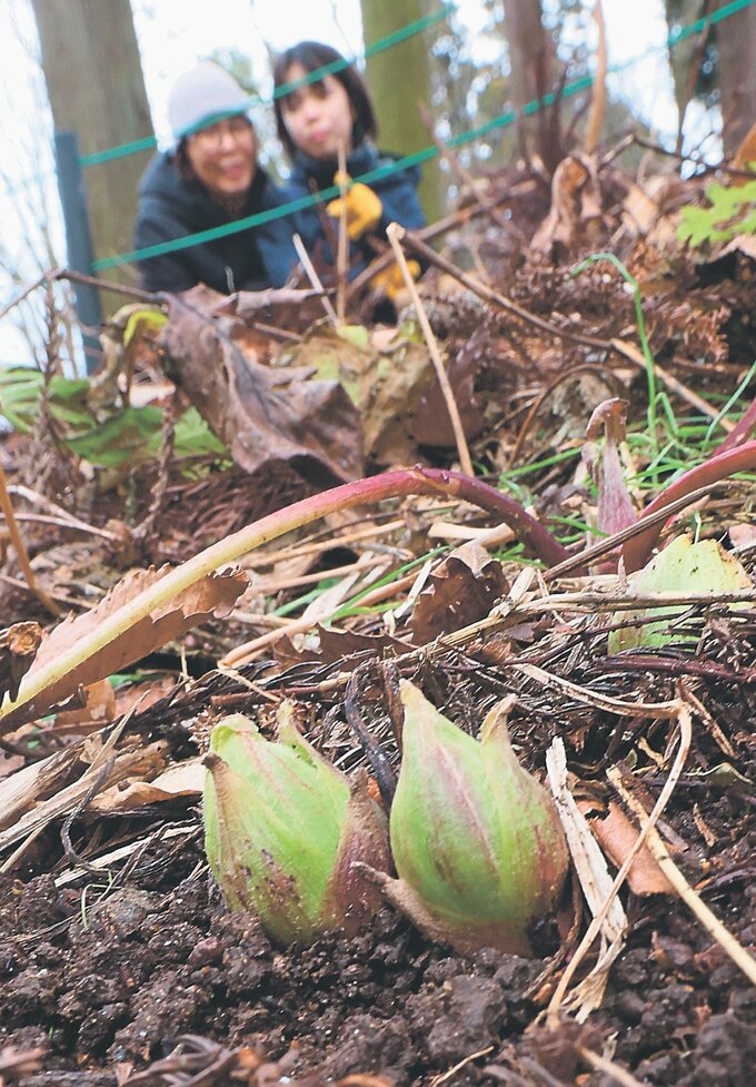 同園によると例年より2週間ほど早く芽吹いた。家族と訪れた同市諏訪川原の西元千尋さん(12)は「雪が少ないから早く出てきたのかな」と話していた。担当者は「見つけても採らず、見るだけにしてほしい」と呼びかけている。