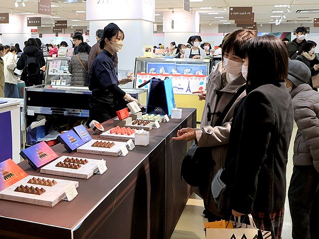 バレンタインデーを前に「ショコラの祭典」が25日、富山市の富山大和で始まり、国内外のチョコレートを買い求める人たちでにぎわった。2月16日まで。